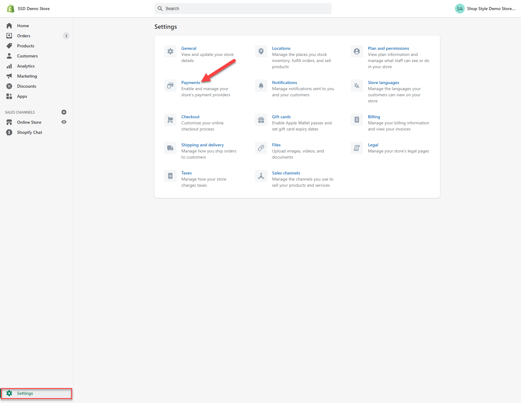1. Go to Settings > Payments